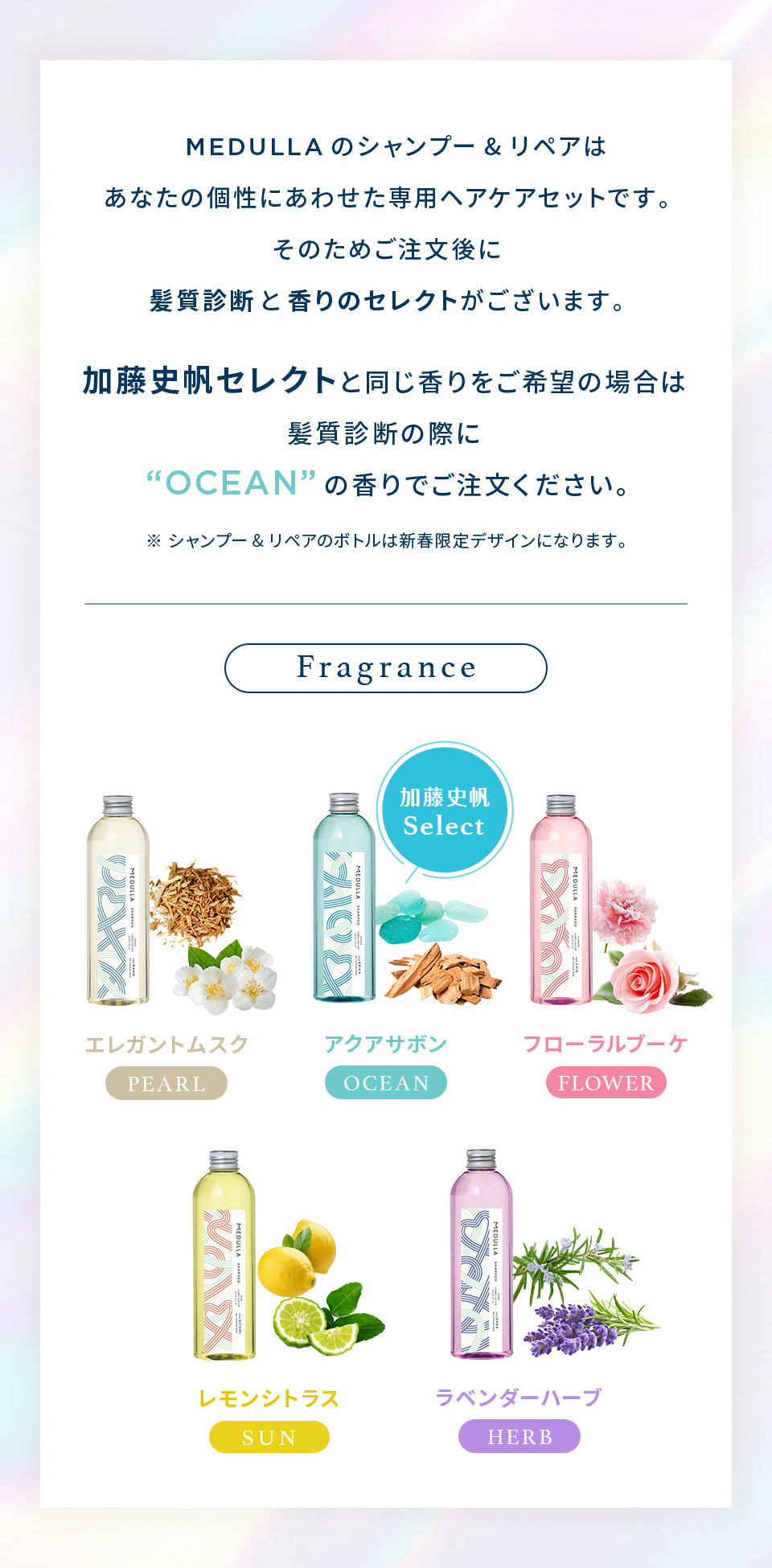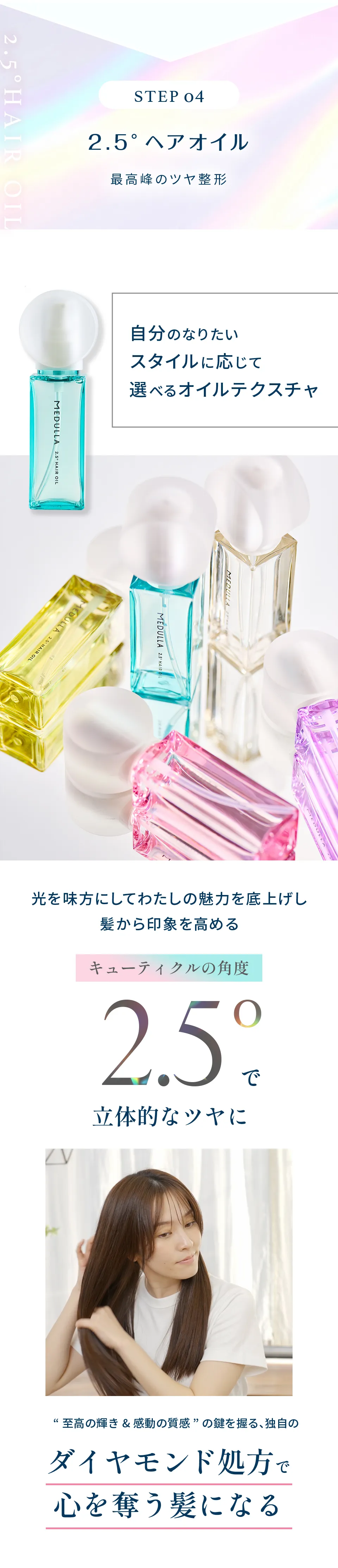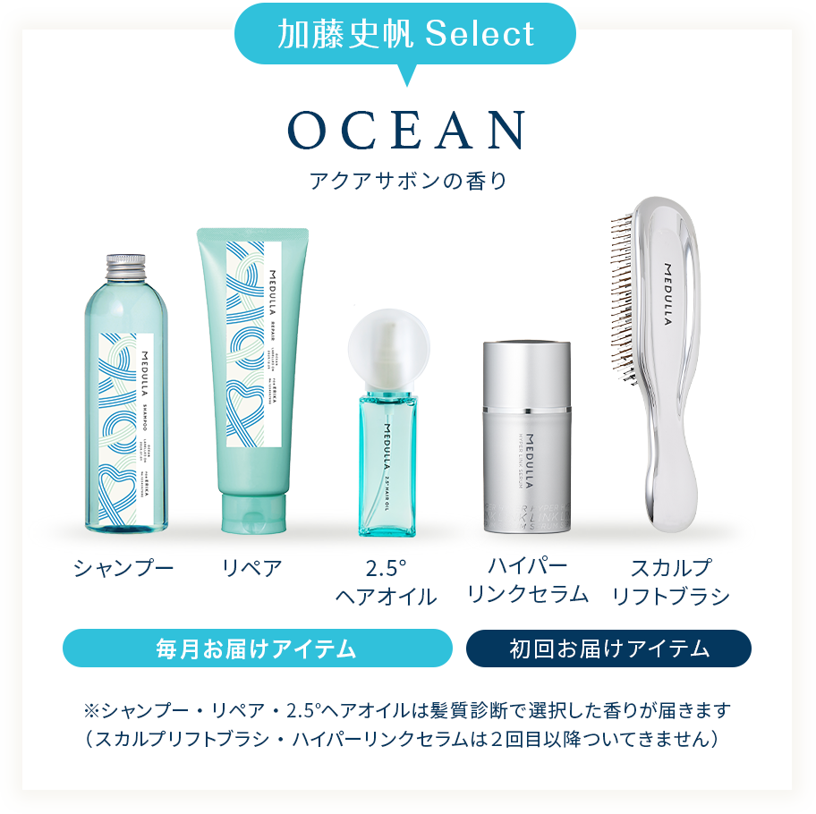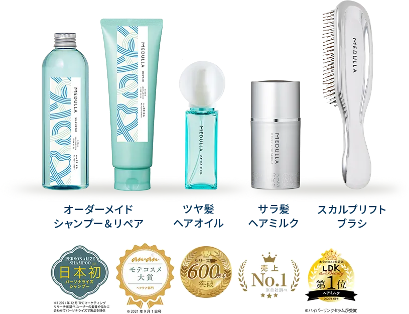 MEDULLAのヘアケア用品や美容機器は、全て性別問わずご使用いただける製品となっております。 髪質や頭皮の状態、髪のお悩みに合わせて髪質診断の回答を元に約7万通りの組み合わせから処方を決定しておりますので、 頭皮のベタつき、髪のボリュームなど、髪質診断でご自身のお悩みや今の状態をお答えください。